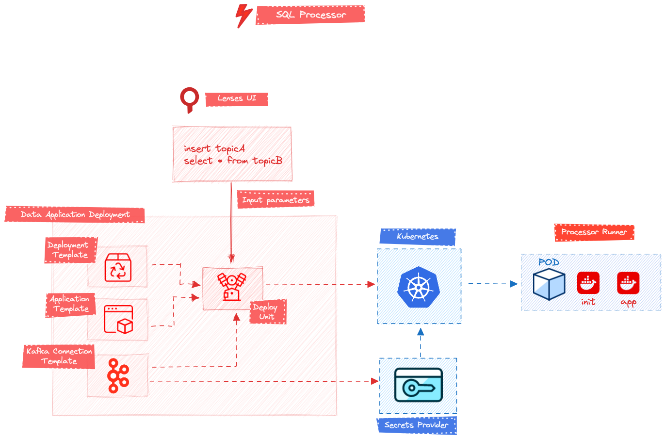 Data Application Deployment is the process that Lenses created to work streaming processing. The Data Application Deployment has a few steps before the application.